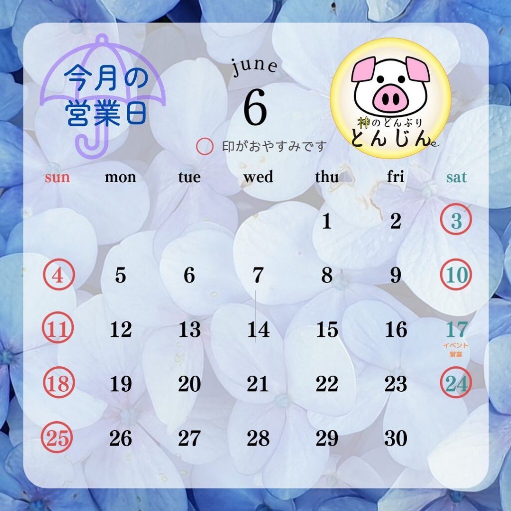 いつもご利用ありがとうございます🐖🐖🐖とんじんです🐖🐖🐖お待たせ致しました️6月の営業カレンダーでございます。17日(土曜)は成田新生市場でイベントがございますのでとんじんも営業致します#成田 #... -